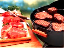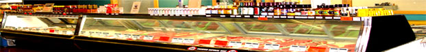 of meats including: beef and pork products, fish and seafood, ostrich,